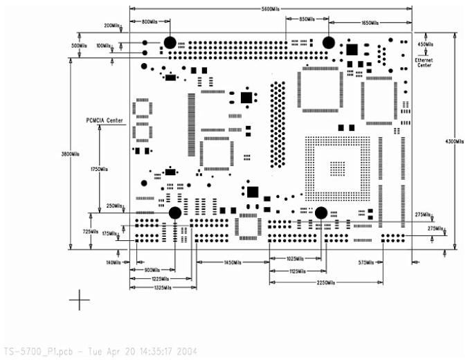 The model TS-5700 is a compact, full-featured PC compatible Single Board Computer based on the AMD Elan520 processor. At 133 MHz, it is approximately 10 times faster than our other 386EX based products for only a small additional cost. PC compatibility allows for rapid development since you can use standard PC development tools such as Turbo C or Power Basic or Linux based tools as well. If you have done work in the PC world in the past, you will find you can now build applications for a very small target that does not require a keyboard, video, floppy disks, or hard drives. By adding the optional TS-9500 peripheral board, you can compile and debug directly on the TS-5700 with standard VGA video and keyboard interfaces. Alternatively, you can typically write and debug code on a host PC using standard development tools for the PC platform, then simply copy it to and run it on the TS-5700 without modification. If additional peripherals are required, the PC/104 expansion bus allows for many standard functions available off-the-shelf. It is also very simple to create a custom PC/104 peripheral board for those special features that differentiate your product. Technologic Systems can provide technical support as well as a free quotation for any custom hardware, software, or BIOS modifications you may require. This manual is fairly short. This is because for the most part, the TS-5700 is a standard x86-based PC compatible computer, and there are hundreds of books about writing software for the PC platform. The primary purpose of this manual is documenting where the TS-5700 differs from a standard PC.